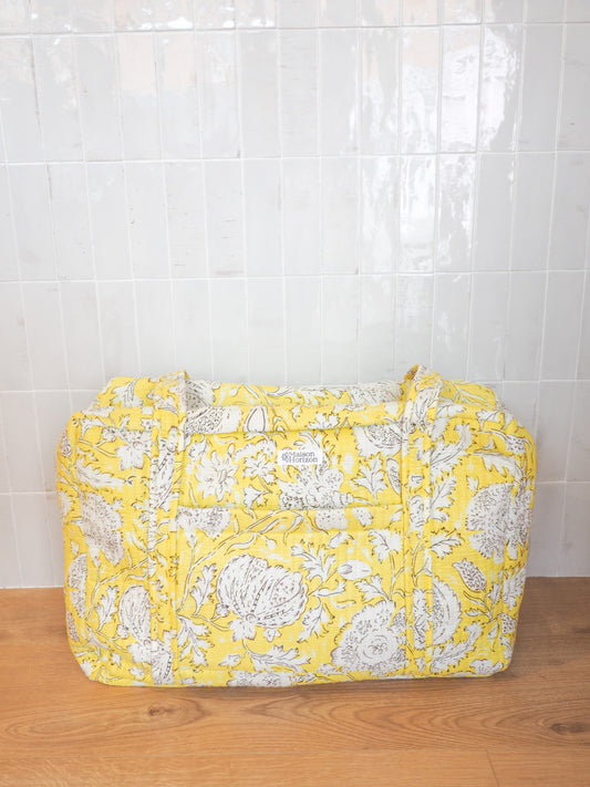 En venteSac weekend fleuri jaune/blanc