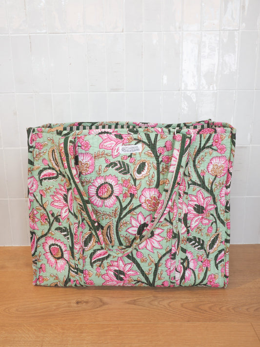 En venteSac cabas fleuri vert/rose