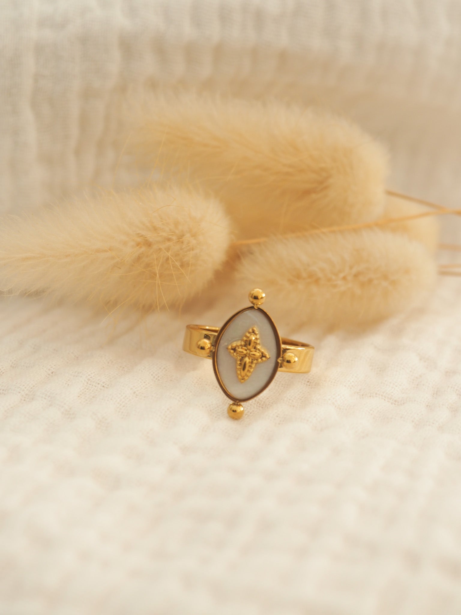 Bague médaillon blanc boules