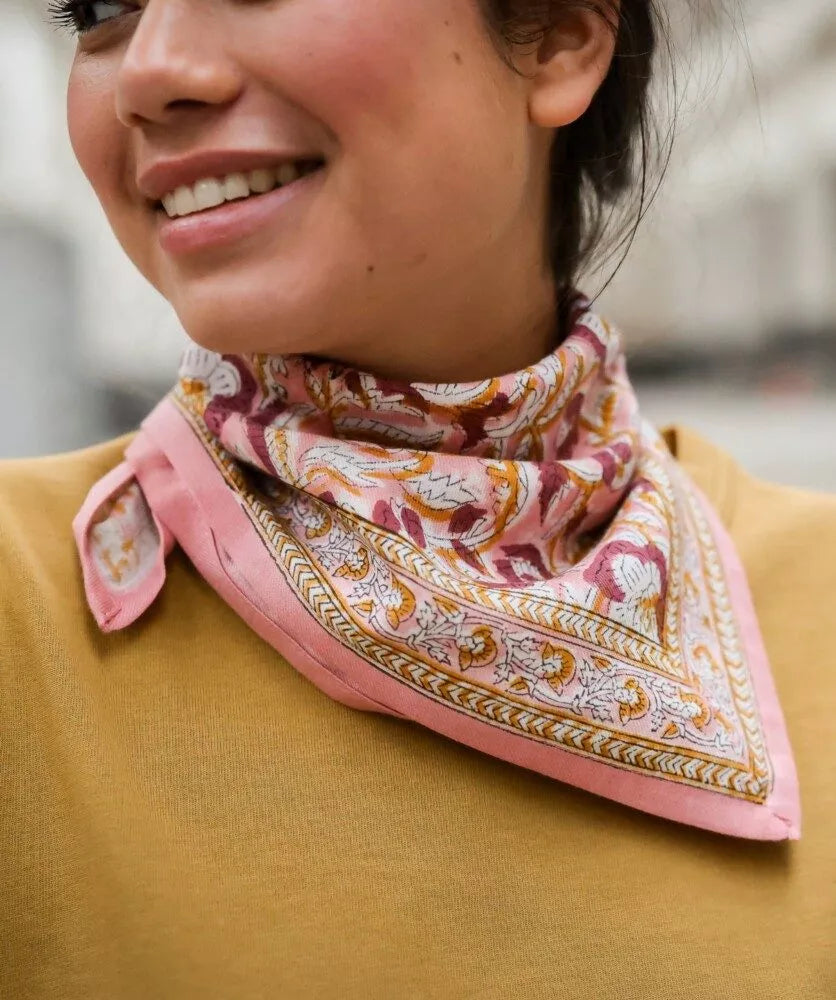*L'impression au block-print est un procédé artisanal dans lequel chaque tampon destiné à imprimer le motif est gravé dans le bois puis imprégné de teinture pour être appliqué manuellement.