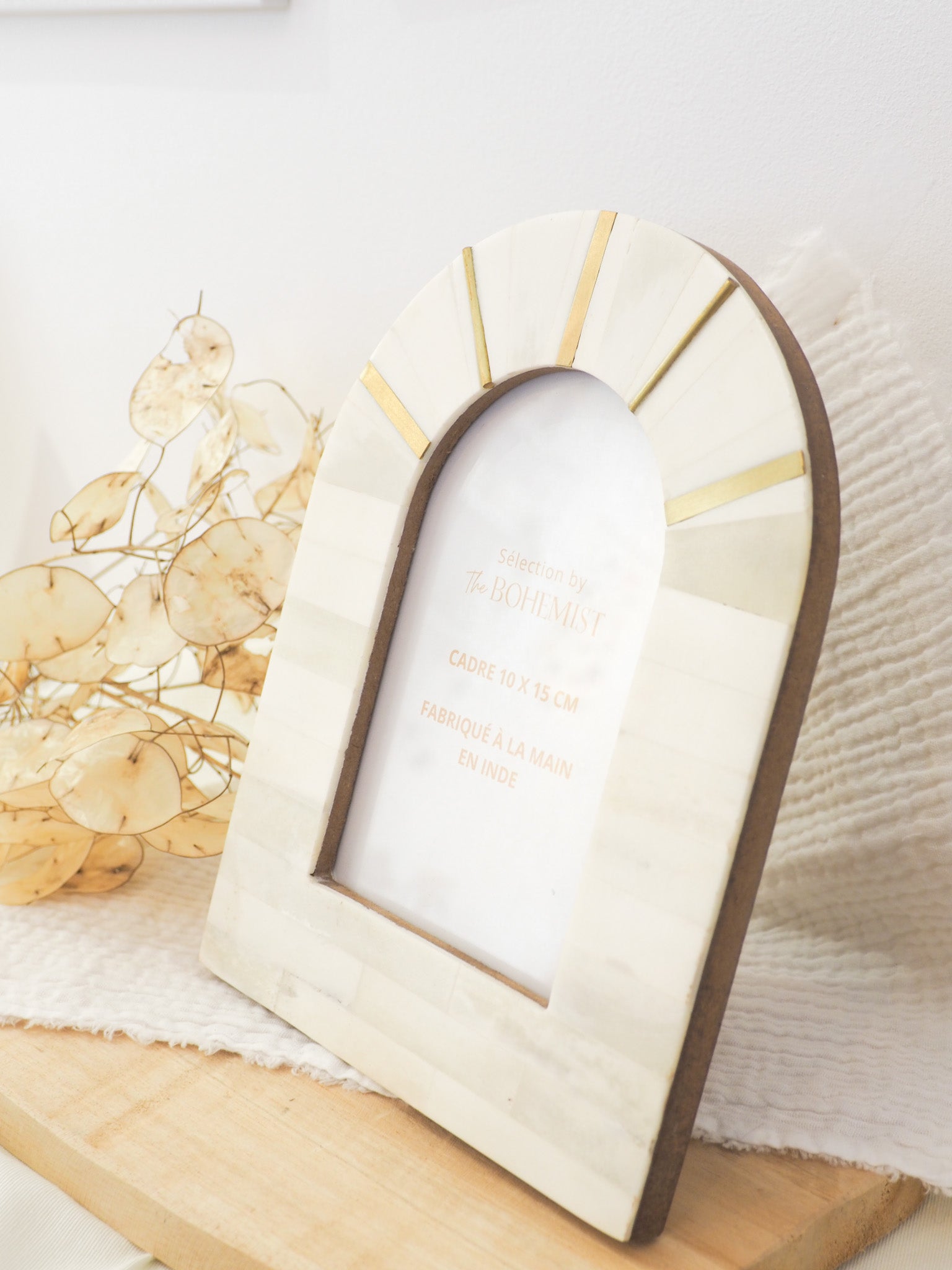 Cadre rectangulaire en os d'origine éthique et sans cruauté animale et laiton