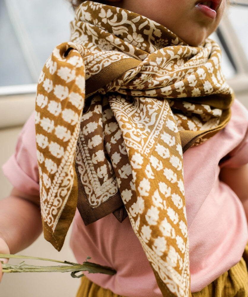 *L'impression au block-print est un procédé artisanal dans lequel chaque tampon destiné à imprimer le motif est gravé dans le bois puis imprégné de teinture pour être appliqué manuellement.