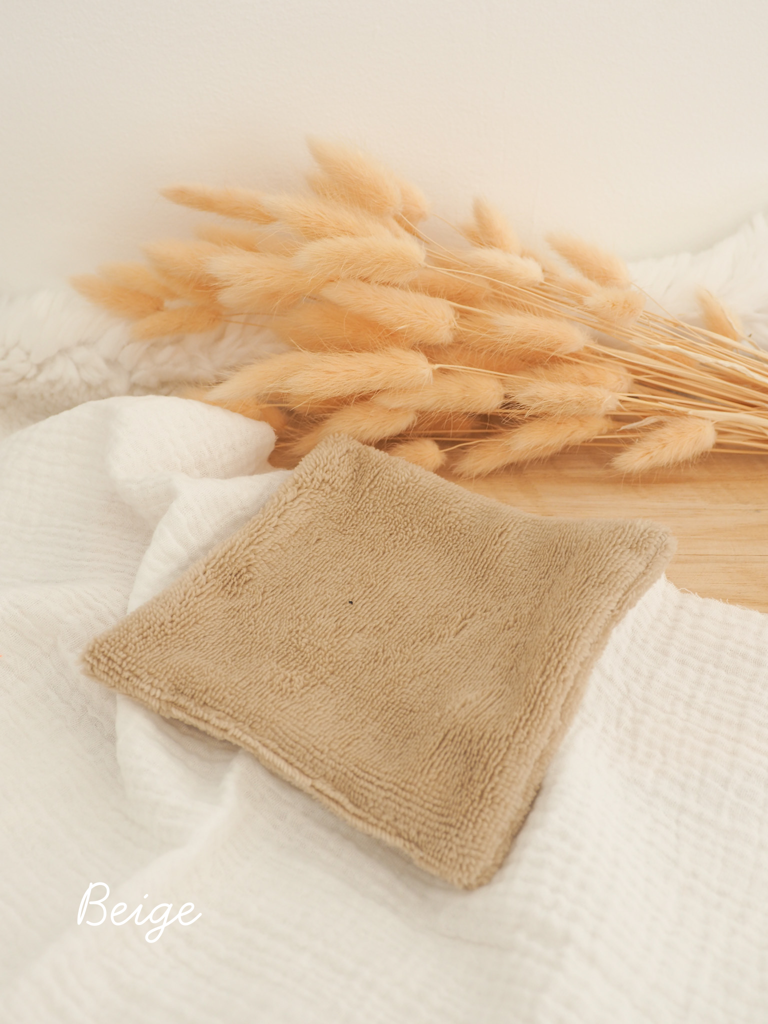 Ces petites lingettes sont bi faces et s'utilisent des deux côtés. Vous pouvez les passer en machine à 30°C dans un filet et les laisser sécher à l'air libre. 🌀