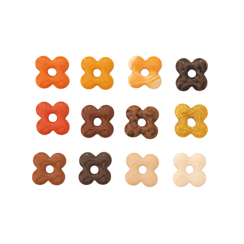 Les bijoux sont fabriqués à partir de pâte polymère et résine pour certains modèles. Les anneaux, chaine et puces sont en acier inoxydable.