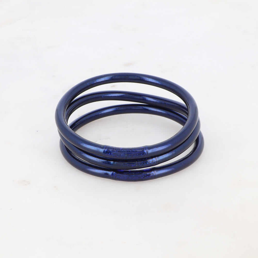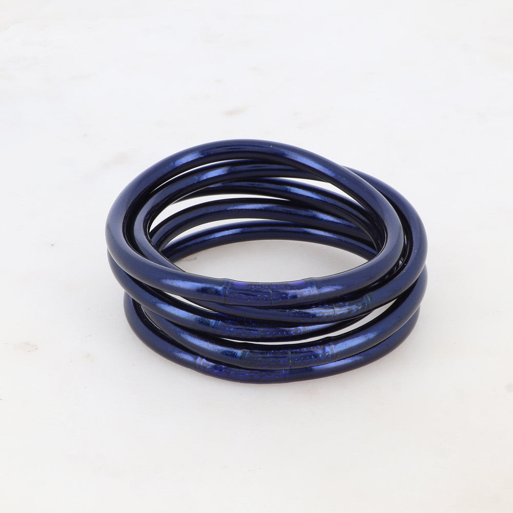 Jonc souple transparent remplis de feuilles dorées ou argentées décoratives épais avec un mantra gravé "Bonheur, Chance, Fortune et Amour" en thaïlandais.