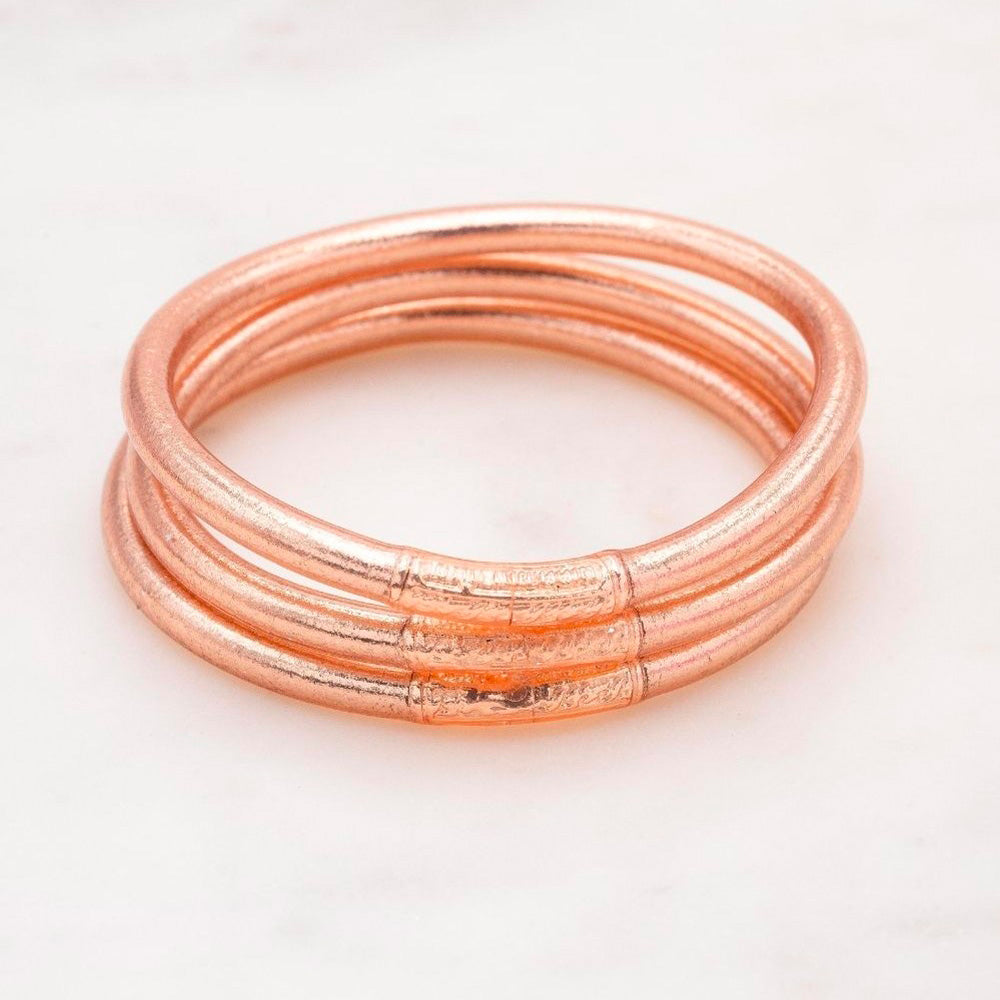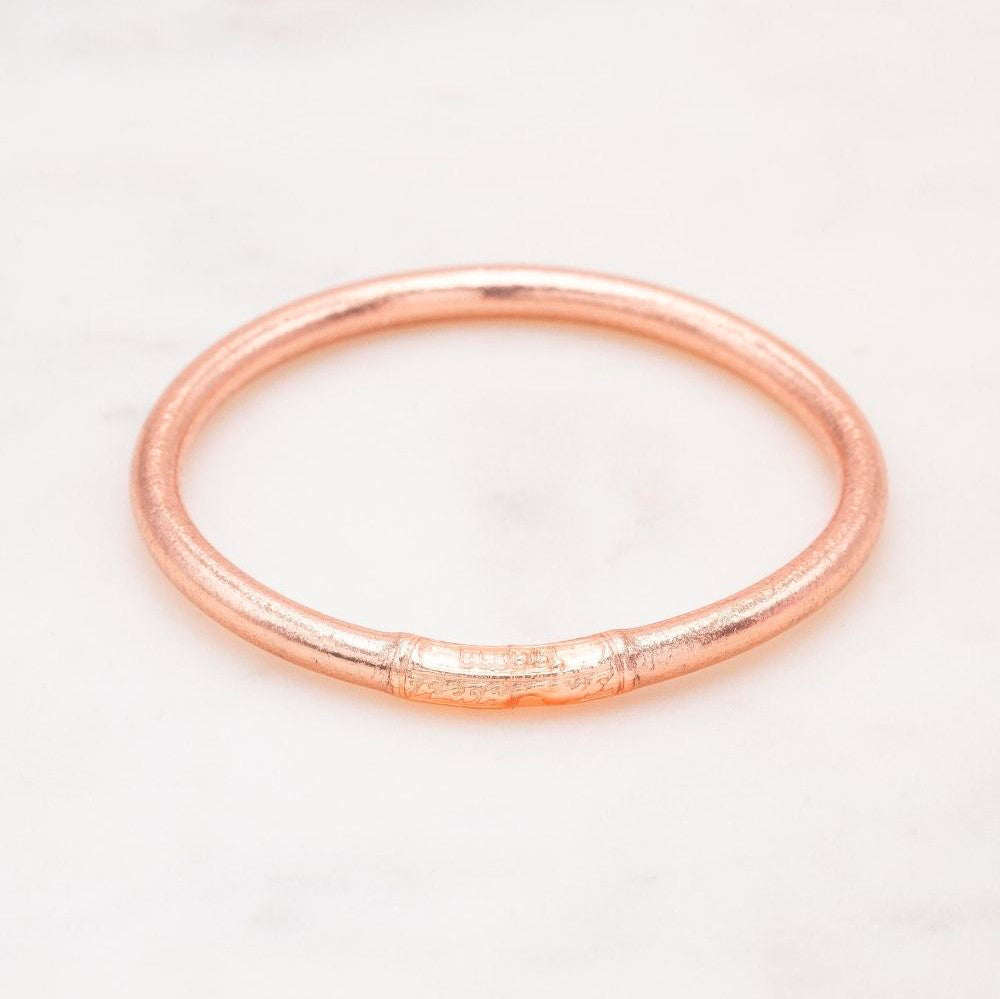 Jonc souple transparent remplis de feuilles dorées ou argentées décoratives épais avec un mantra gravé "Bonheur, Chance, Fortune et Amour" en thaïlandais.