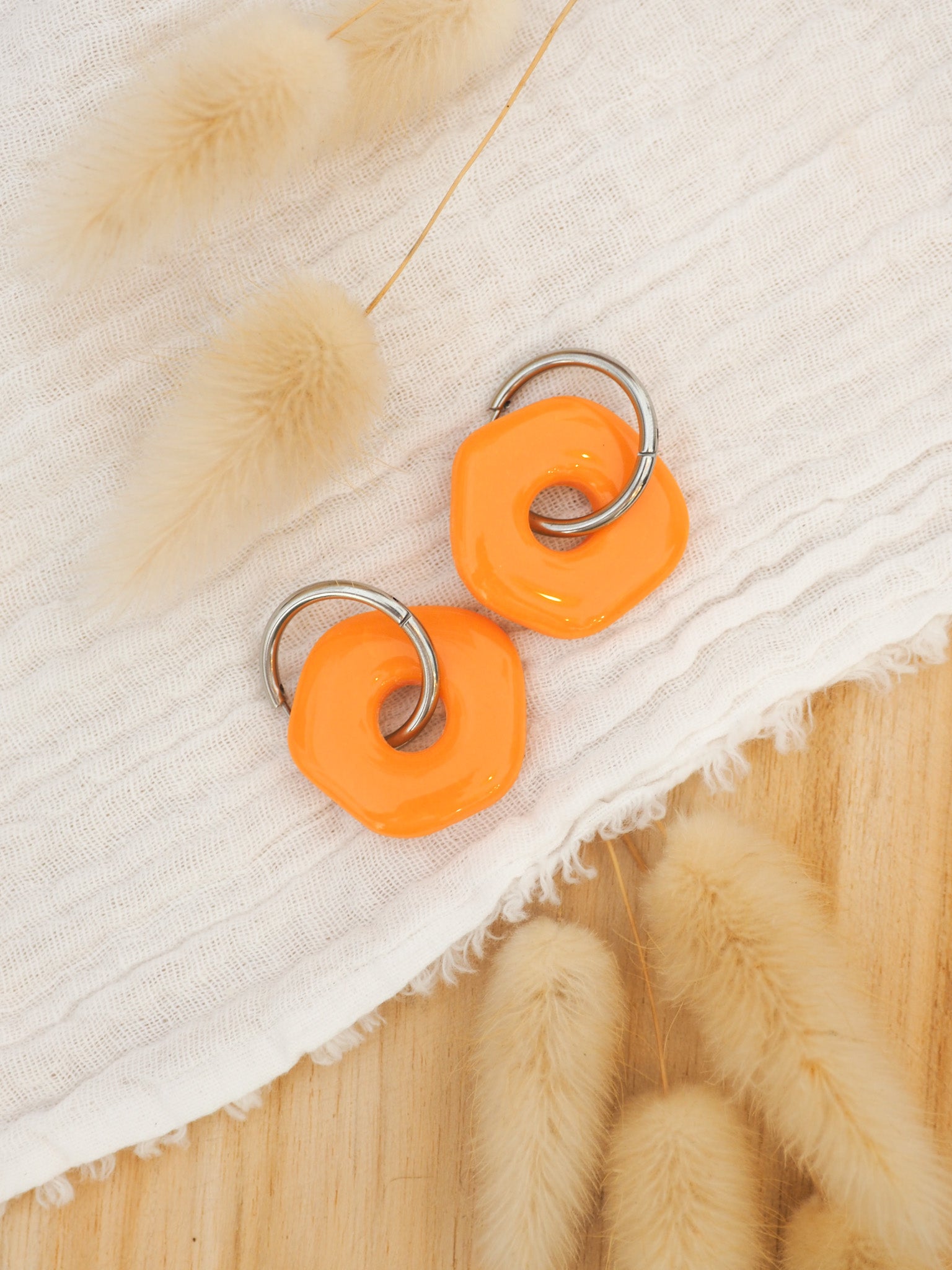 Voici Marion, une paire de boucles d’oreilles en argile polymère, personnalisable à l’infini et interchangeable selon vos looks.