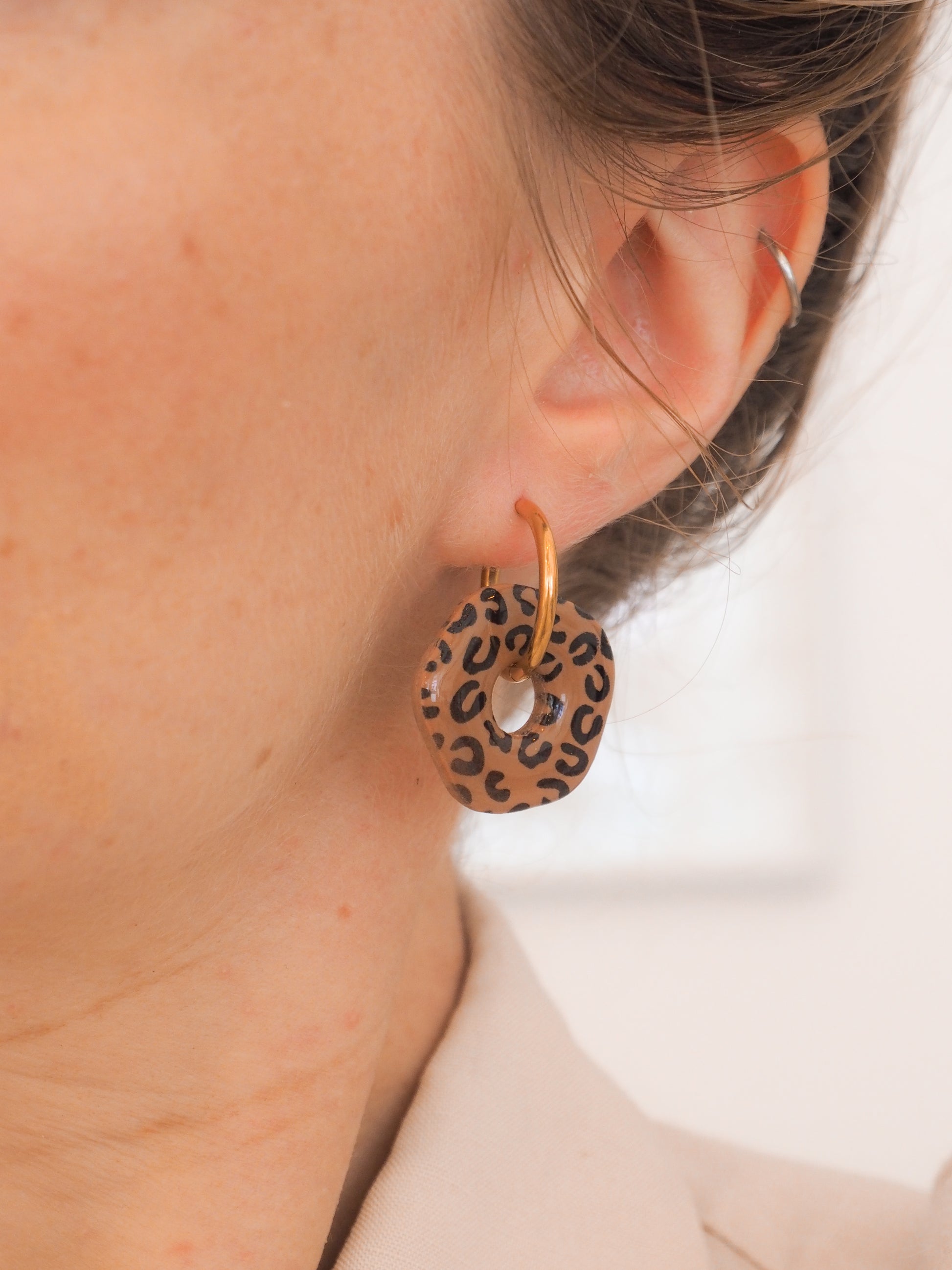 Voici Marion, une paire de boucles d’oreilles en argile polymère, personnalisable à l’infini et interchangeable selon vos looks.