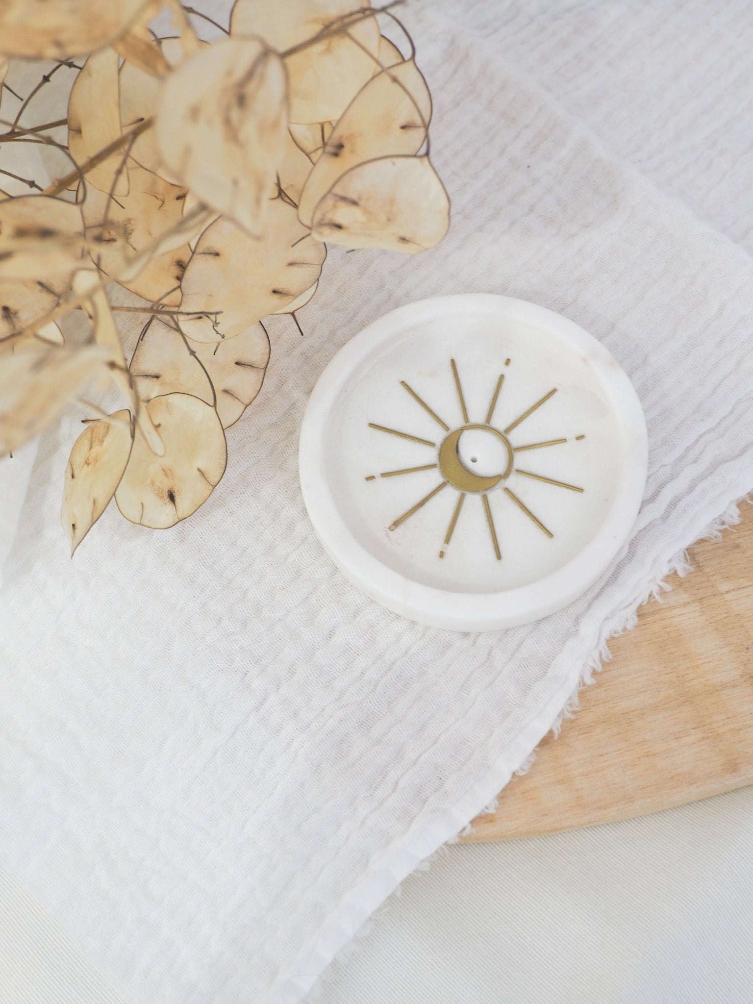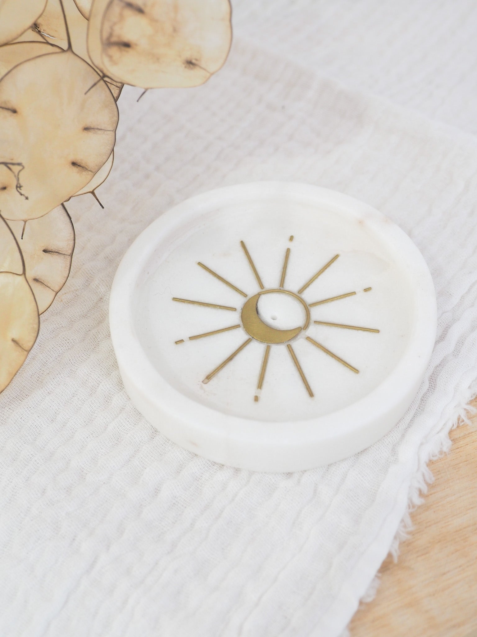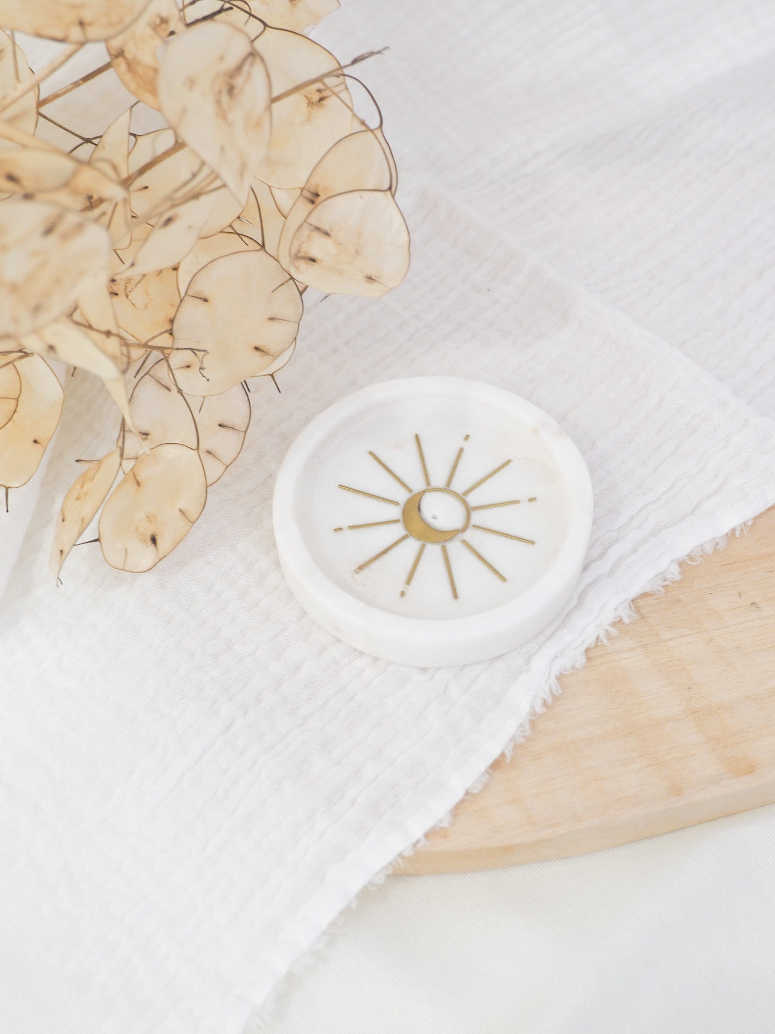 Porte encens rond en marbre et laiton représentant la lune et le soleil 🌙🌞