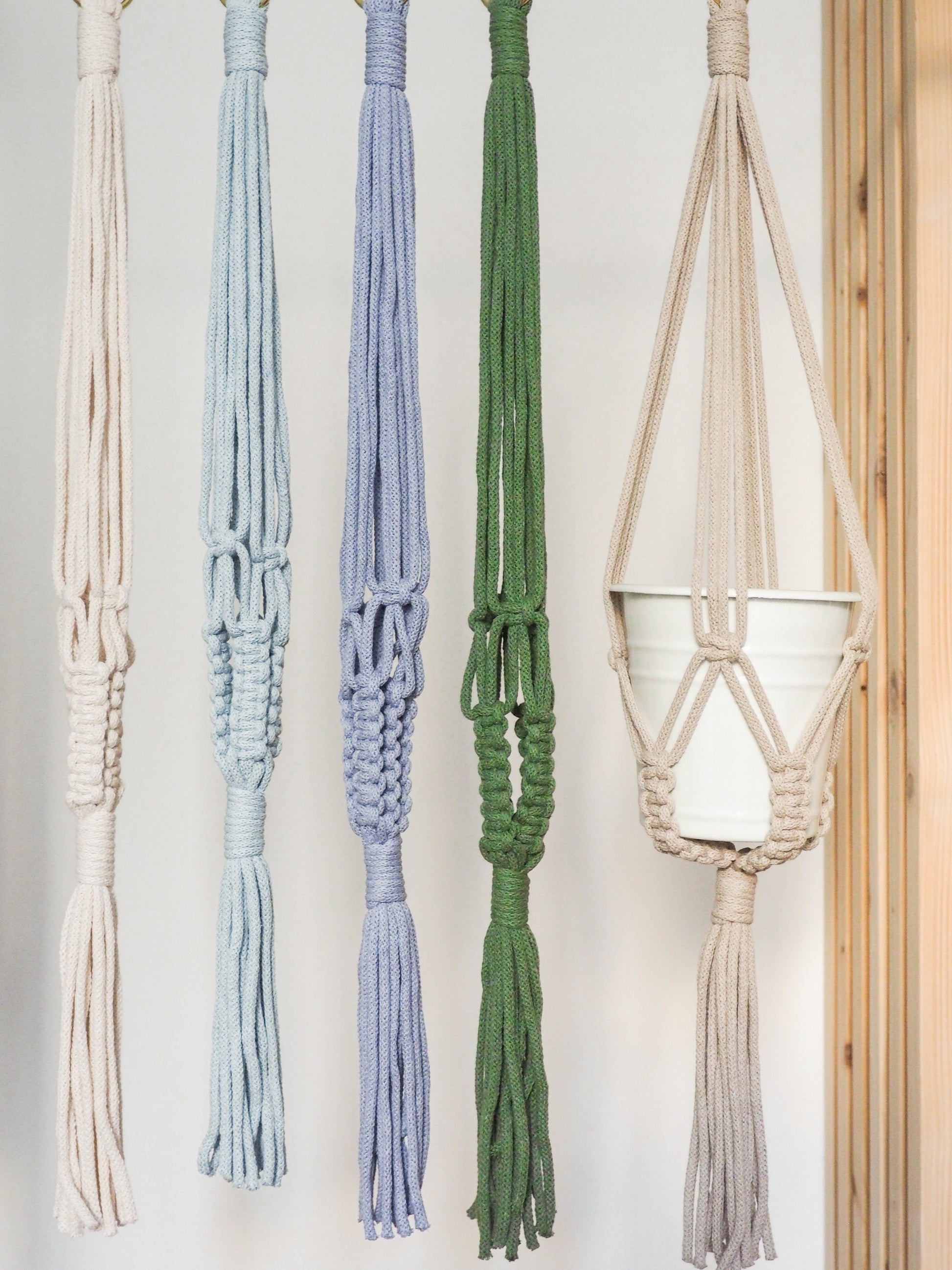 Cette suspension de plante est tressée à la main avec des cordes en coton.
